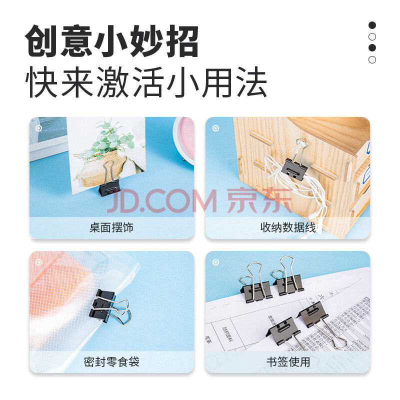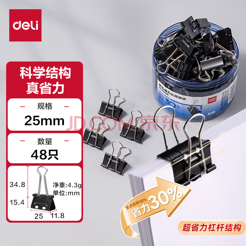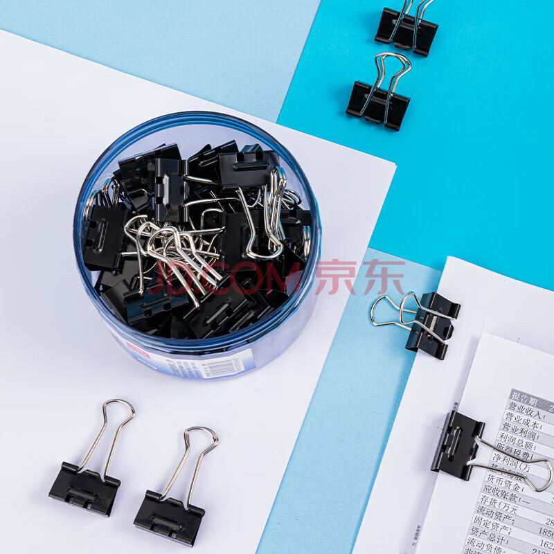 商品相册:得力(deli)48只25mm省力黑色长尾夹票夹 4号中号金属燕尾夹 办公用品 48只/筒 中号8564S第