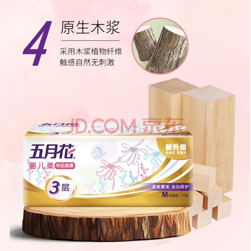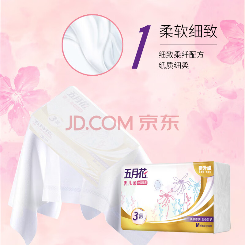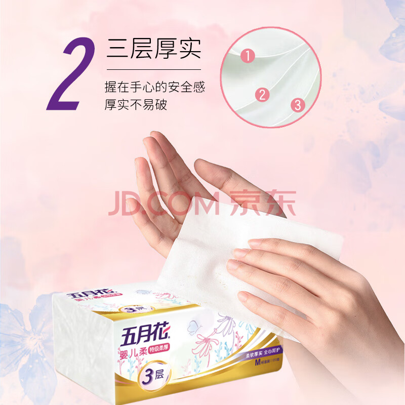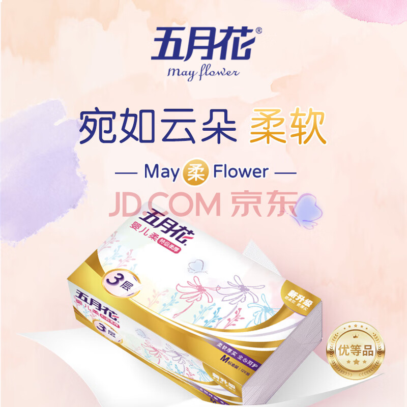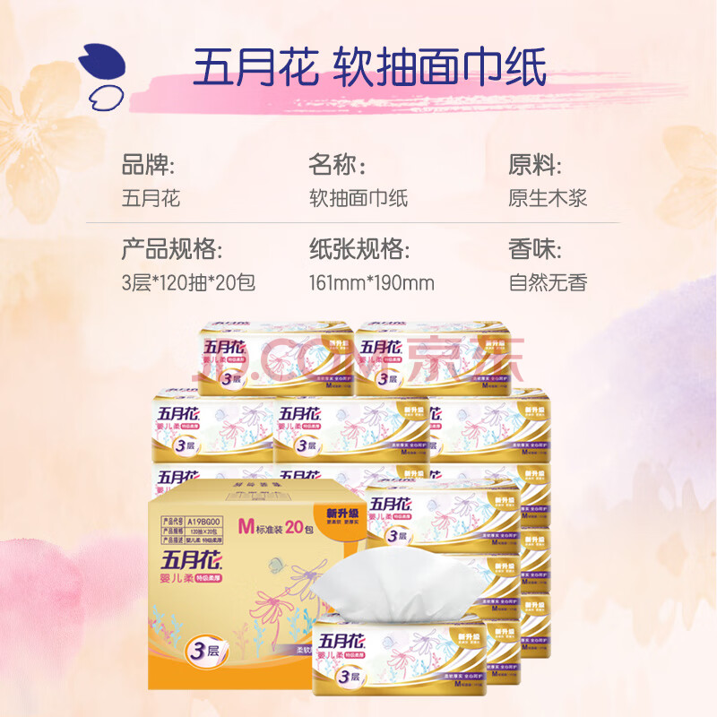 商品相册:五月花(May Flower)抽纸 3层120抽*20包M码 柔厚亲肤面巾纸巾 整箱装第