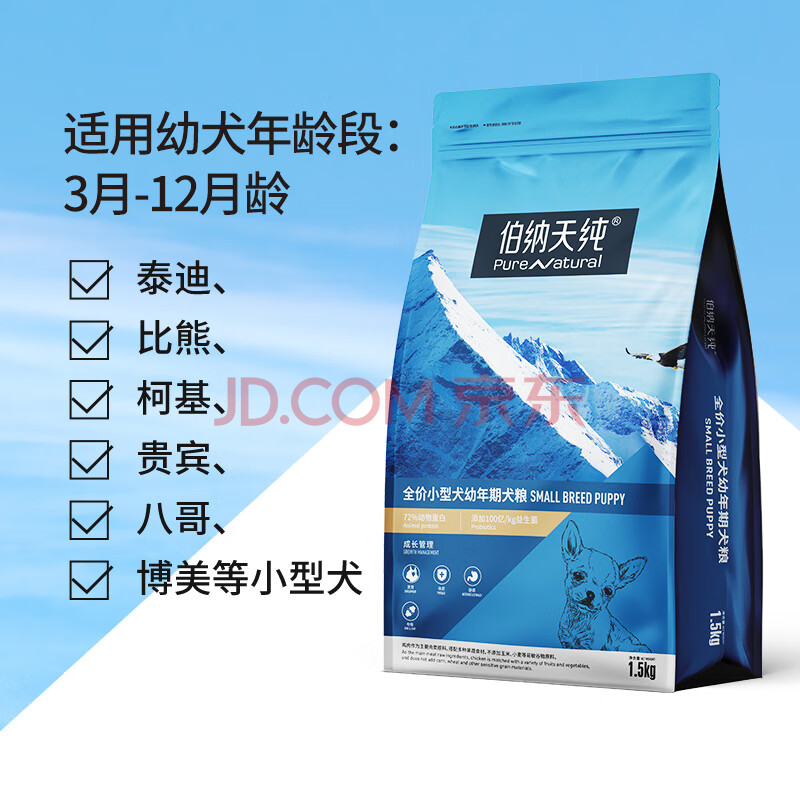 商品相册:伯纳天纯狗粮经典 小型犬幼犬狗粮 3月-12月龄 经典系列柯基1.5kg/3斤第