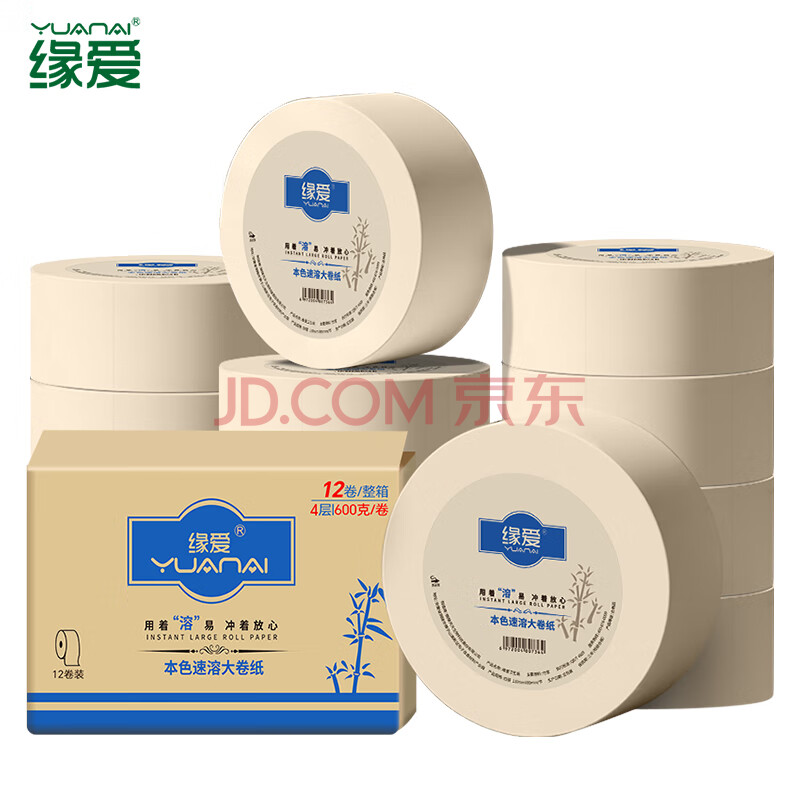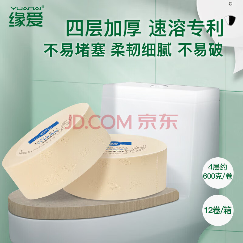 商品相册:缘爱大卷纸商用4层600克*12卷酒店加厚有芯大盘纸酒店卫生纸厕纸整箱第