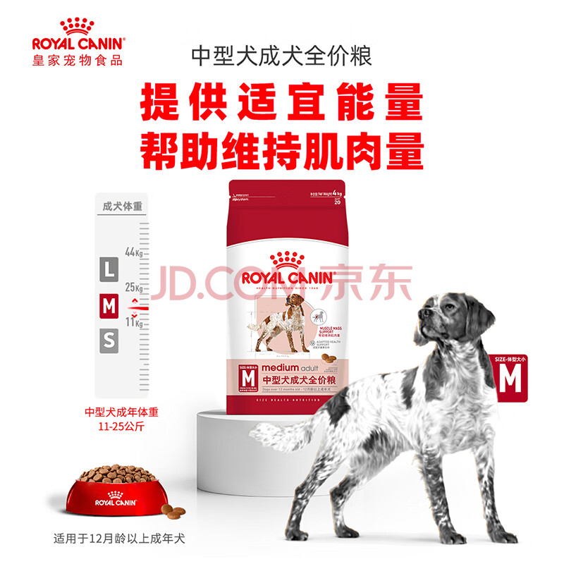 商品相册:皇家狗粮 成犬狗粮 犬粮 宠物 中型犬 M25 全价犬粮 ≥12月 4KG第