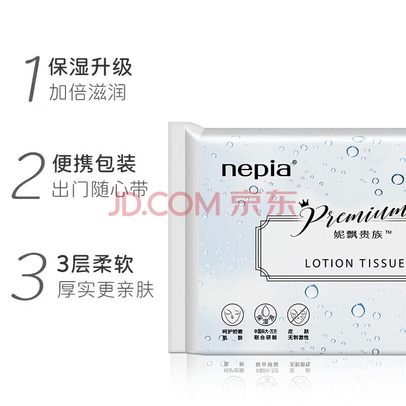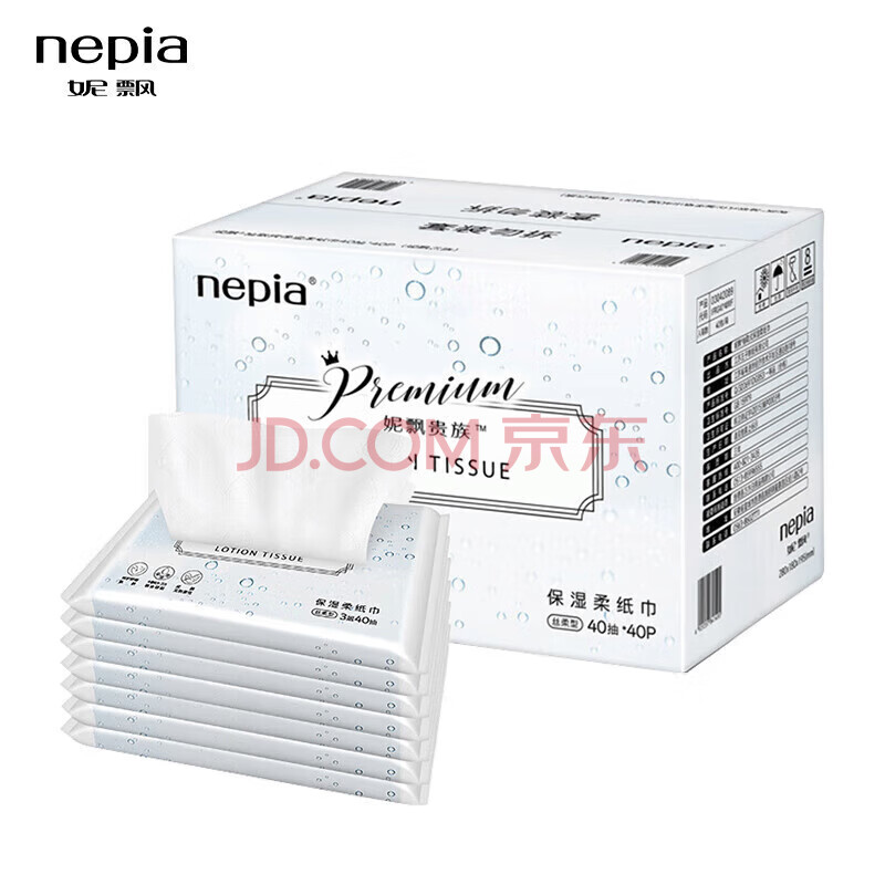商品相册:妮飘(Nepia)贵族柔润保湿纸40抽40包便携装乳霜纸抽纸敏感肌鼻敏感适用3层第