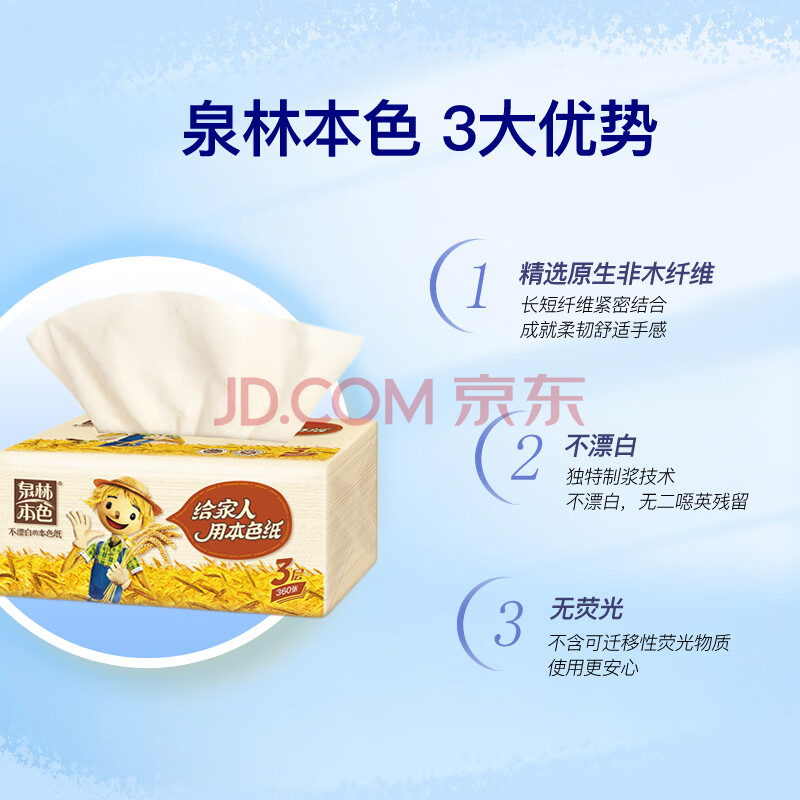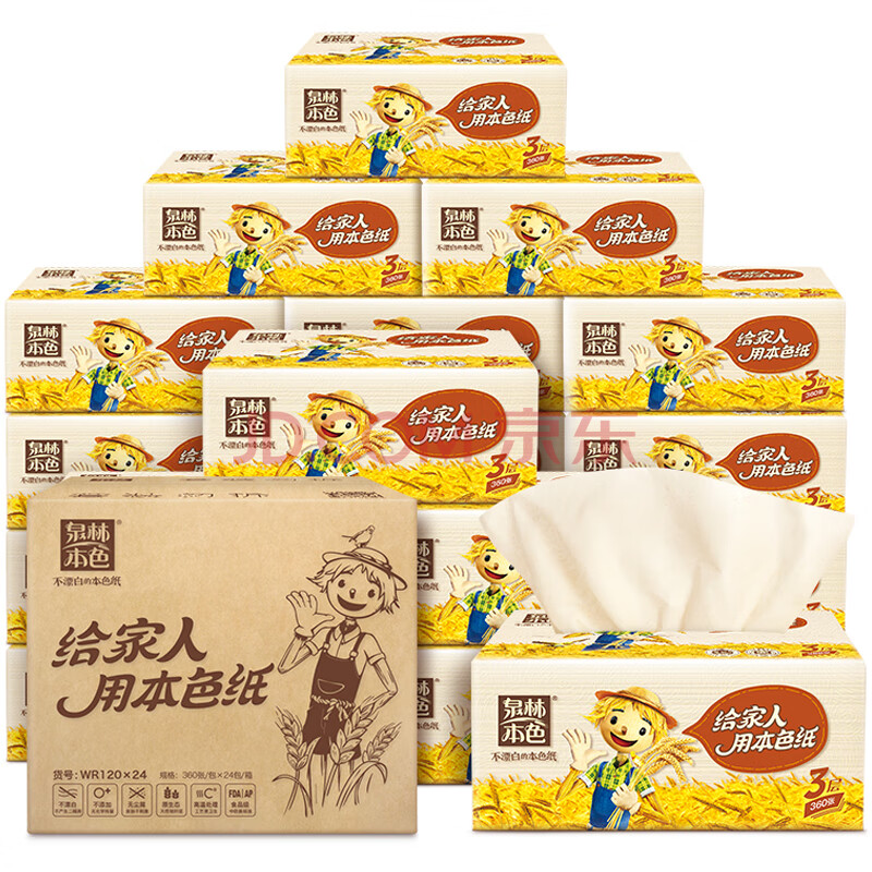 商品相册:泉林本色抽纸 3层120抽*24包 纸巾 卫生纸 面巾纸餐巾纸 亲肤柔软加大整箱第