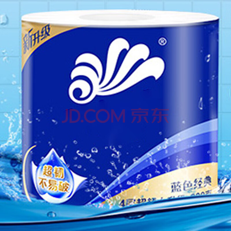 商品相册:纸杰维品 蓝色经典4层卷纸 卫生卷筒纸 纸巾4层加厚第