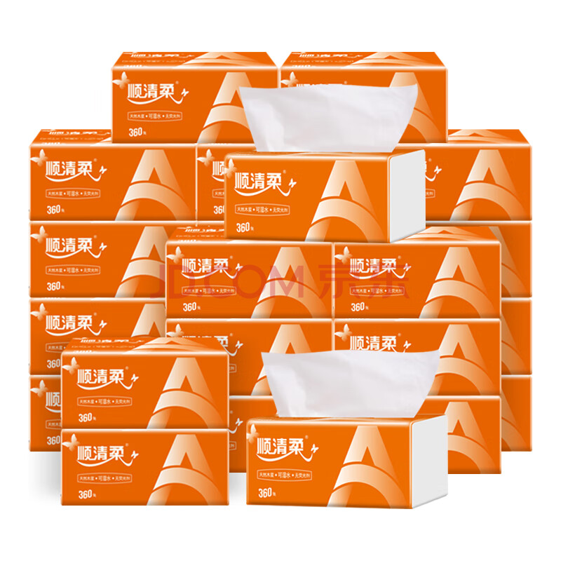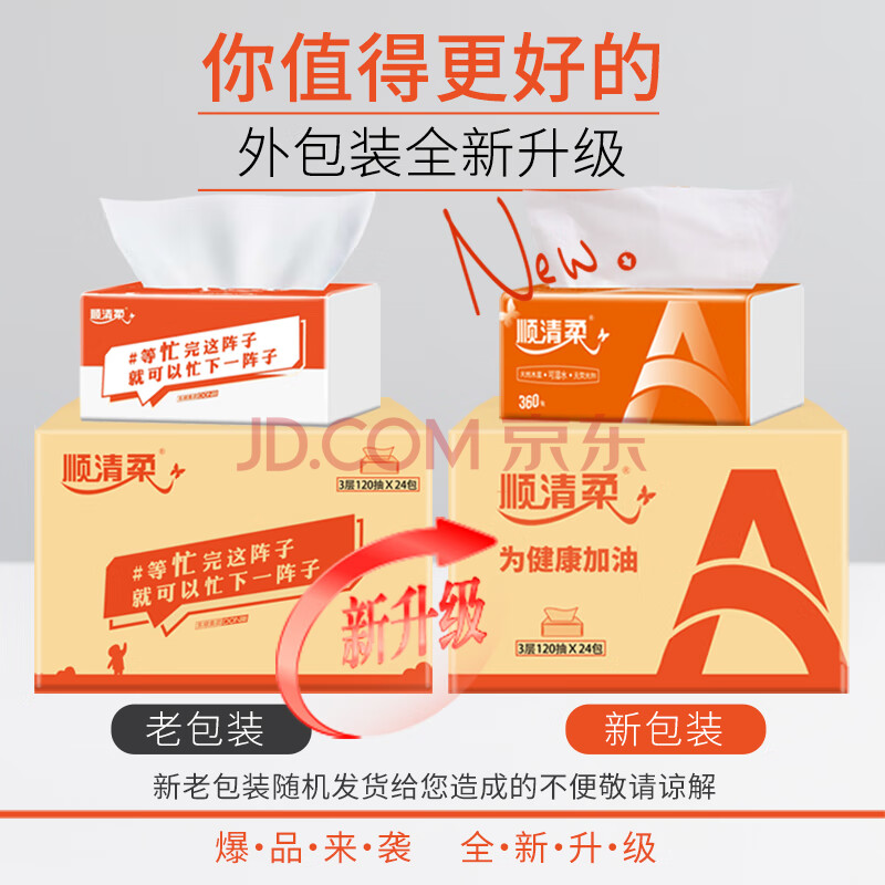商品相册:顺清柔抽纸3层120抽*24包S码 国际版无香抽取式纸巾面巾纸整箱销售第