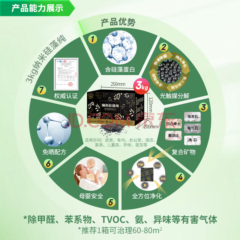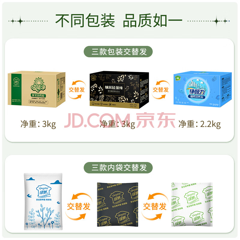 商品相册:绿驰 3kg硅藻纯光触媒活性炭新房车去除甲醛清除剂苯tvoc吸异味竹碳包第