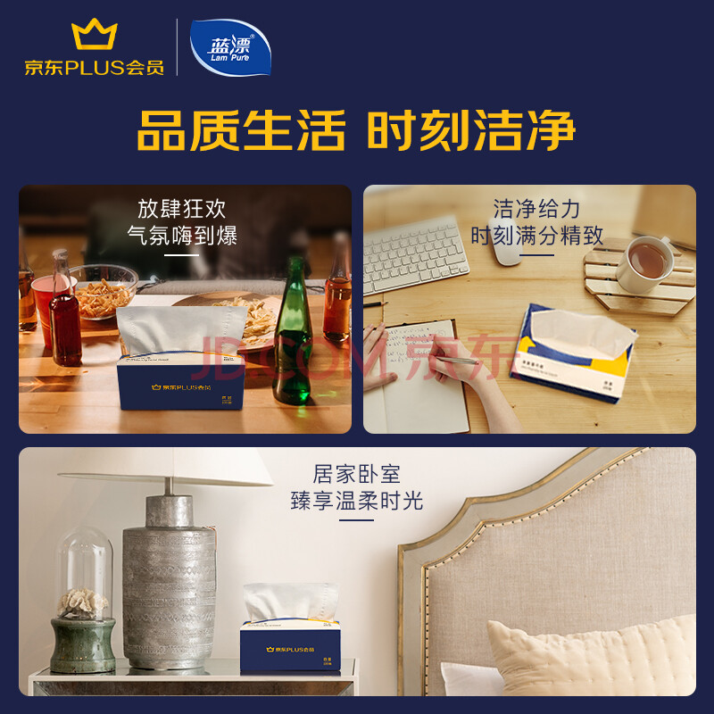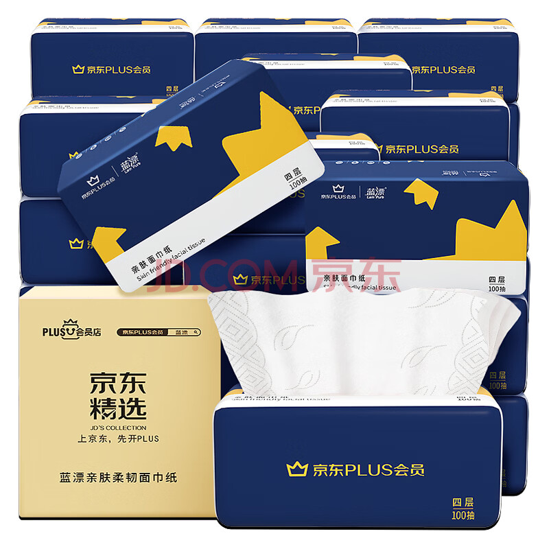 商品相册:蓝漂XPLUS会员联名款 抽纸4层100抽*20包纸巾面巾纸餐巾纸抽整箱装第