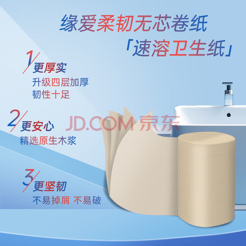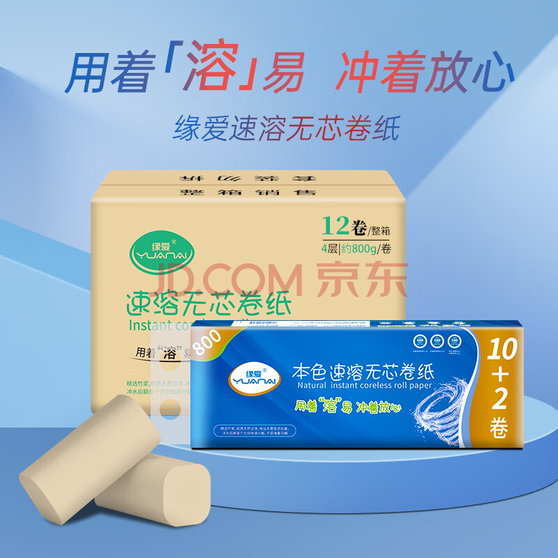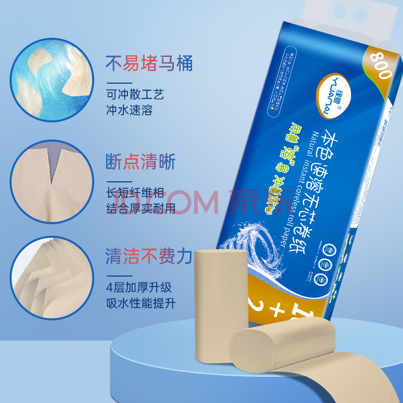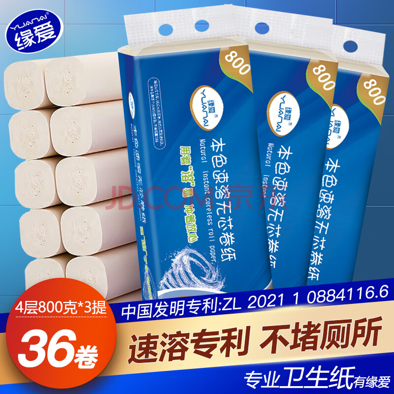 商品相册:缘爱无芯卷纸 经典速溶 4层4.8斤/36卷 可溶水竹浆卫生纸卷筒纸整箱第