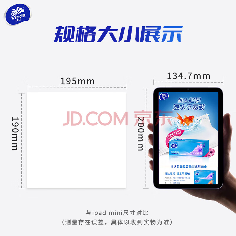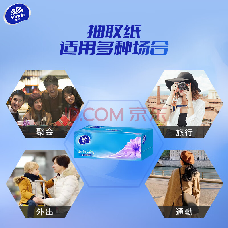 商品相册:维达硬盒抽纸3层130抽*9盒抽取式纸巾长款家用加厚面巾纸餐纸巾V2218第