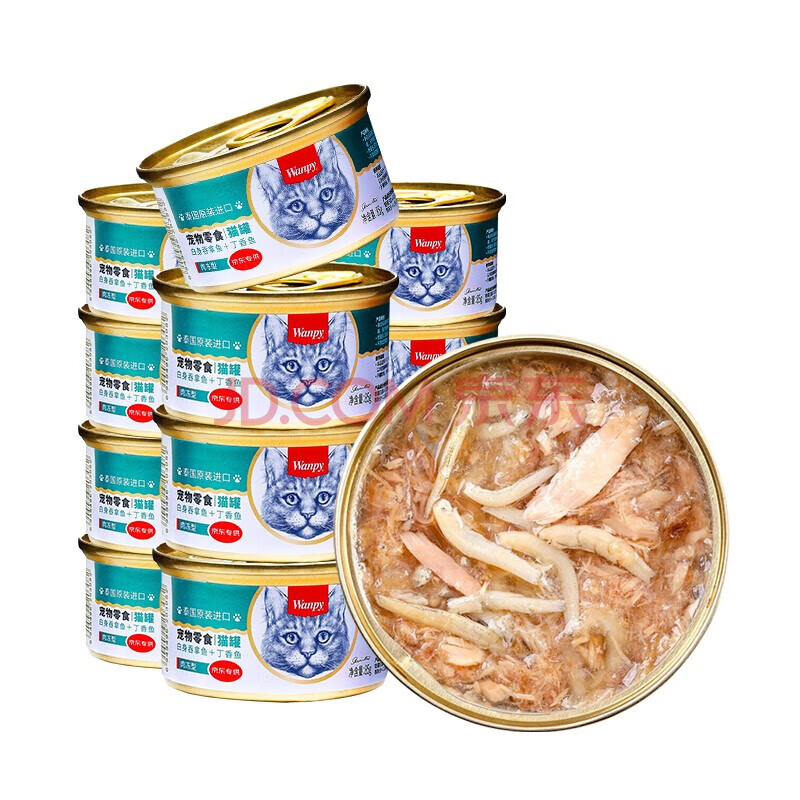 商品相册:顽皮(Wanpy)泰国进口猫罐头85g*12罐 白身吞拿鱼+丁香鱼罐头(肉冻型) 湿粮第
