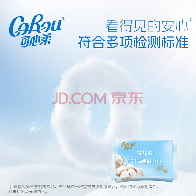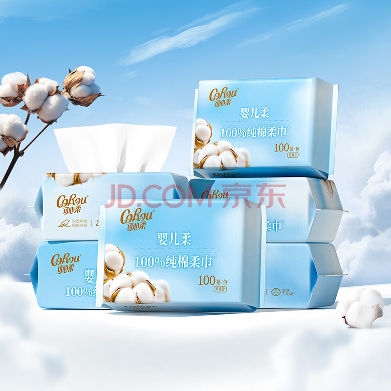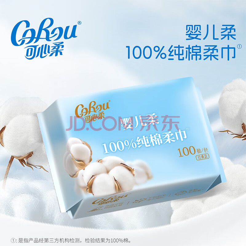 商品相册:可心柔 (V9 COROU)全棉棉柔巾 纯棉洗脸巾 宝宝婴儿棉柔巾 100抽*6包第1张/共8