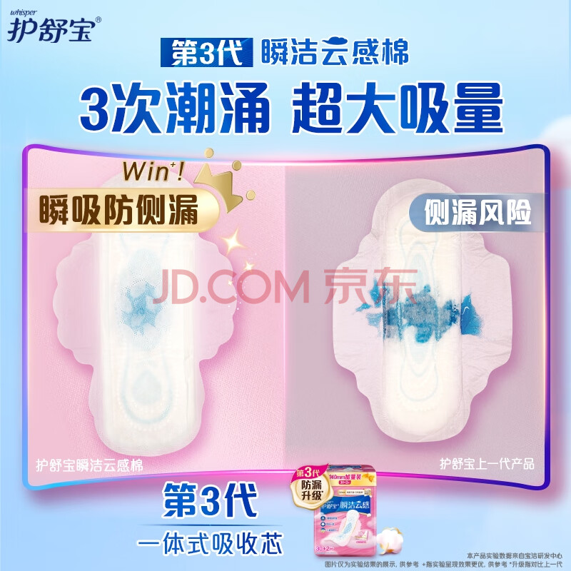 商品相册:护舒宝革新瞬洁云感棉卫生巾日用240mm32片姨妈巾干爽京东自营官方旗舰第