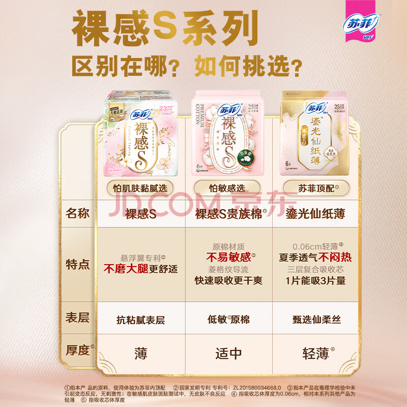 商品相册:苏菲裸感S贵族棉纯棉日用卫生巾25cm6片透气亲肤敏感肌姨妈巾京东自营第