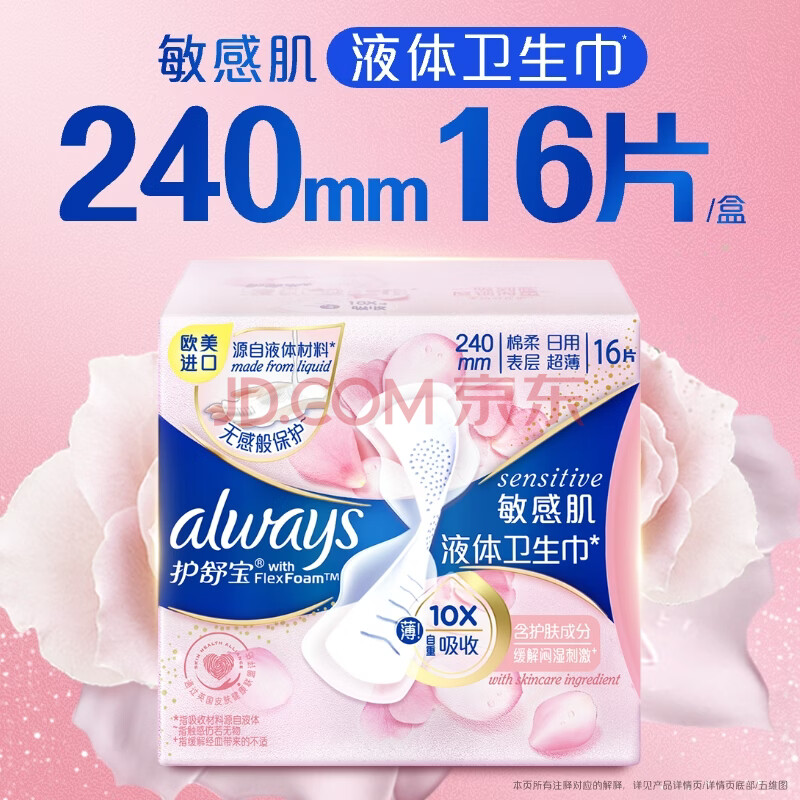 商品相册:护舒宝敏感肌液体卫生巾日用240mm16片姨妈巾护肤款京东自营官方旗舰第