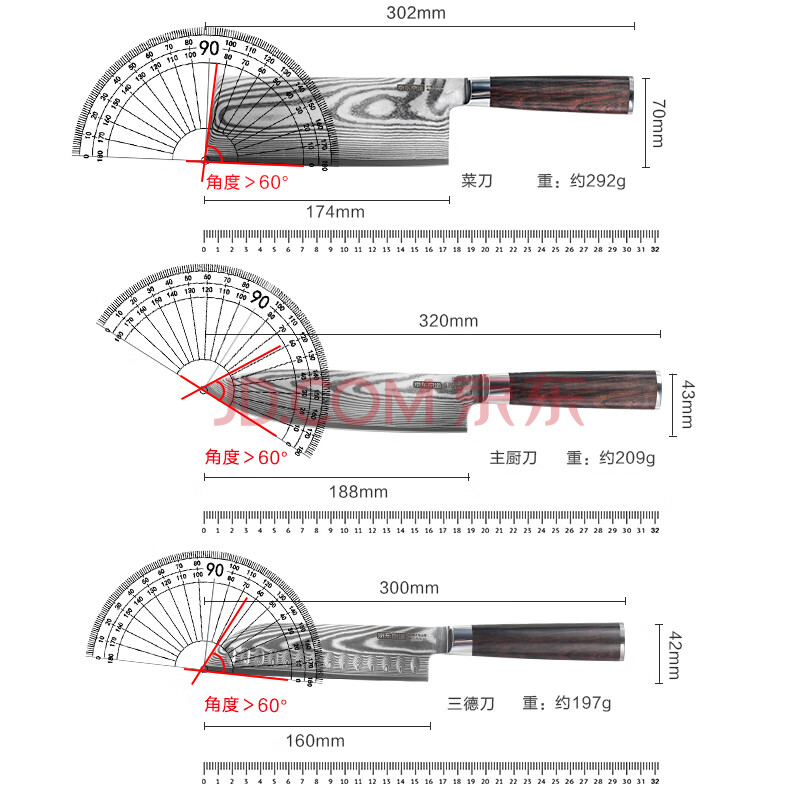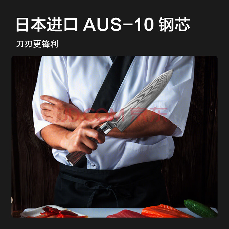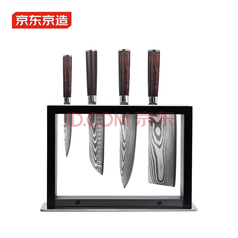 商品相册:京东京造 刀具全套 菜刀套装进口钢【67层大马士革钢】礼盒装5件套第1张/共9