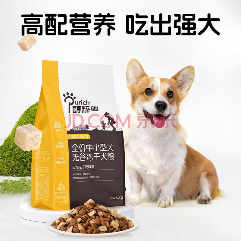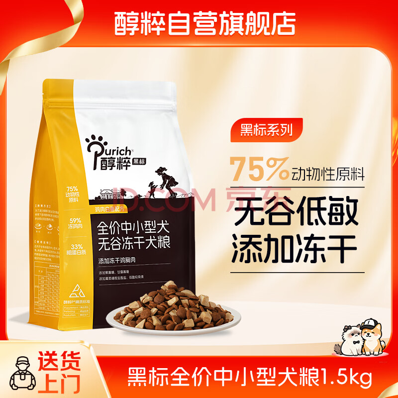 商品相册:醇粹狗粮黑标冻干全价犬粮纯粹成犬幼犬通用型中小型1.5kg第