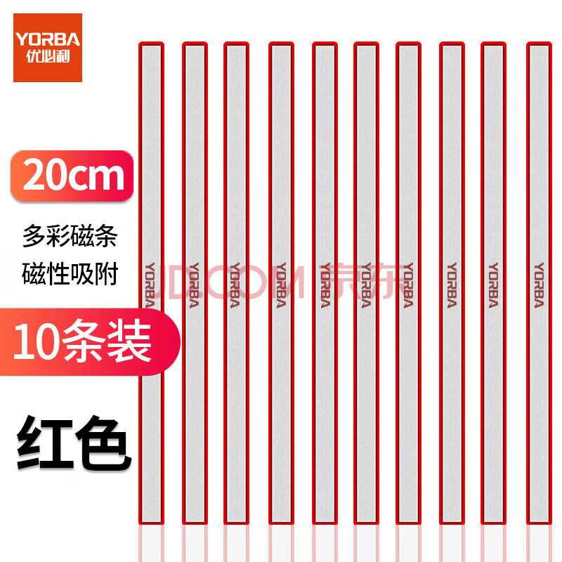 商品相册:优必利 硬胶磁条 白板磁铁吸铁石彩色压纸磁力条磁贴 20cm彩色磁条 10条 红色第