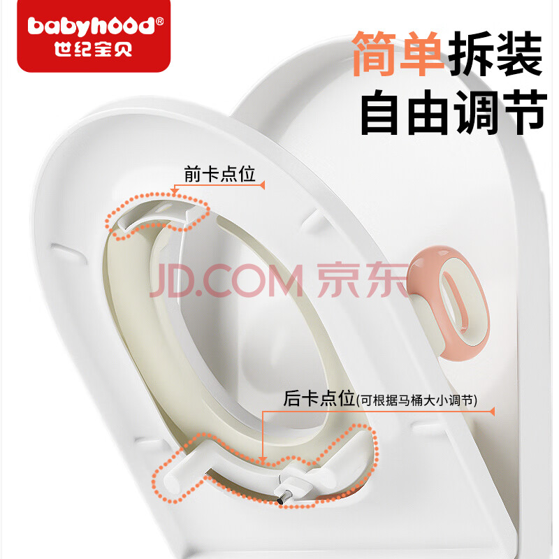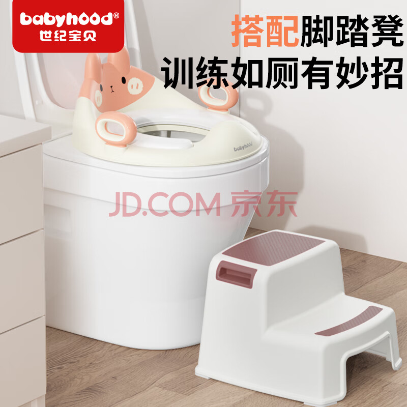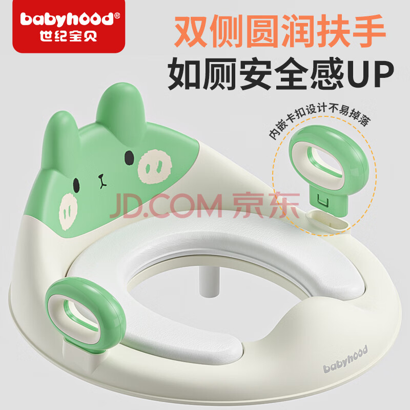 商品相册:世纪宝贝(babyhood)儿童马桶圈男女宝宝坐便器马桶辅助便圈PVC软坐垫 小兔子 甜橙粉第