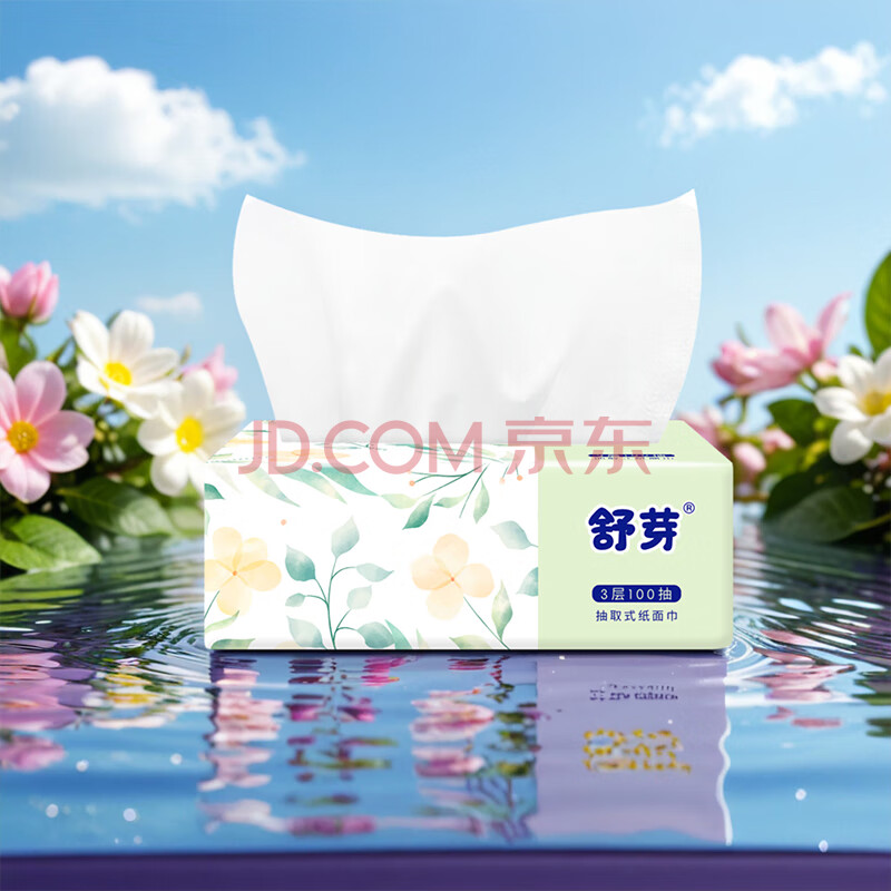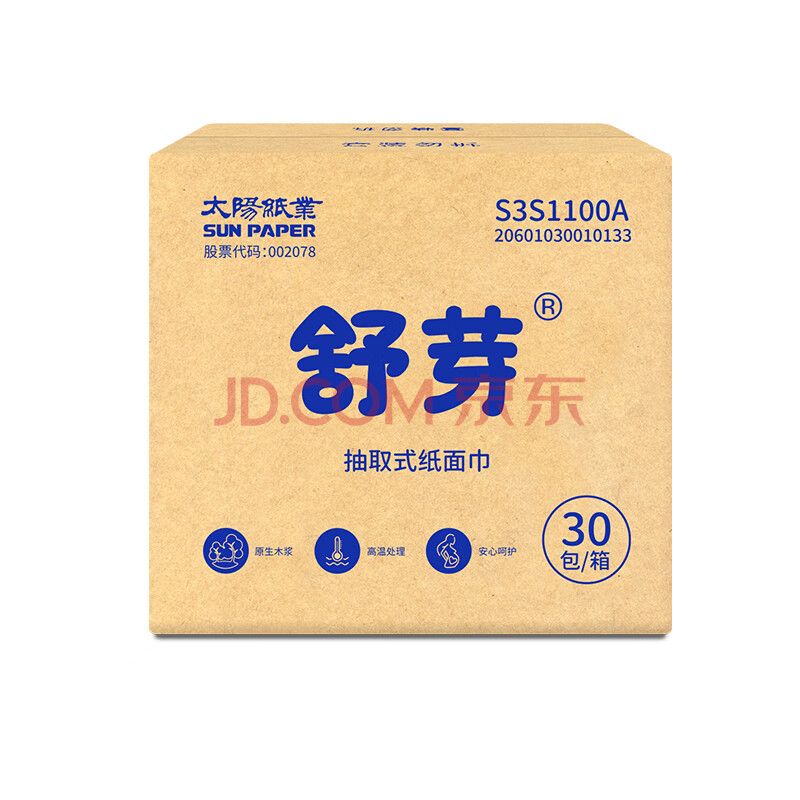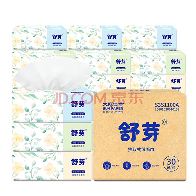 商品相册:幸福阳光 抽纸 舒芽3层100抽*30包超值装 湿水不易破 柔软亲肤 包装升级第