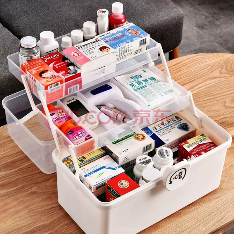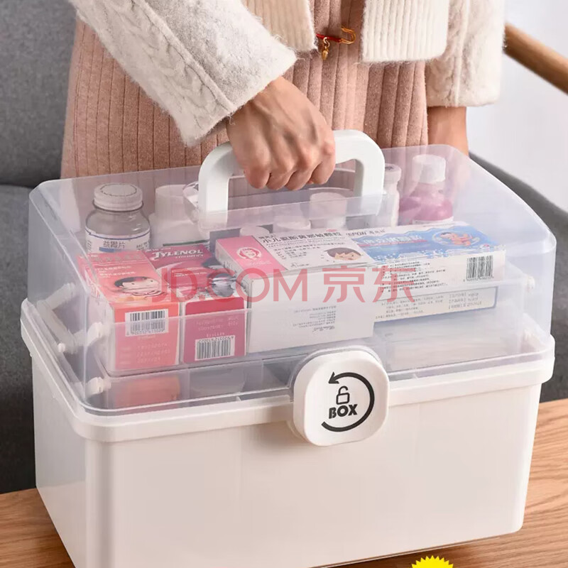 商品相册:luse 药箱家庭装家用大容量多层医药箱全套应急医护收纳药品小药盒【白色大号】第