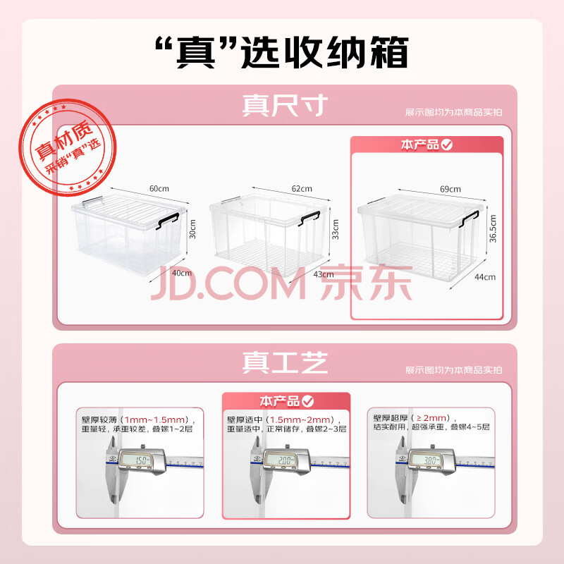 商品相册:JEKO&JEKO特耐斯直角收纳箱透明玩具衣服储物箱整理箱搬家打包箱88L 3只装第