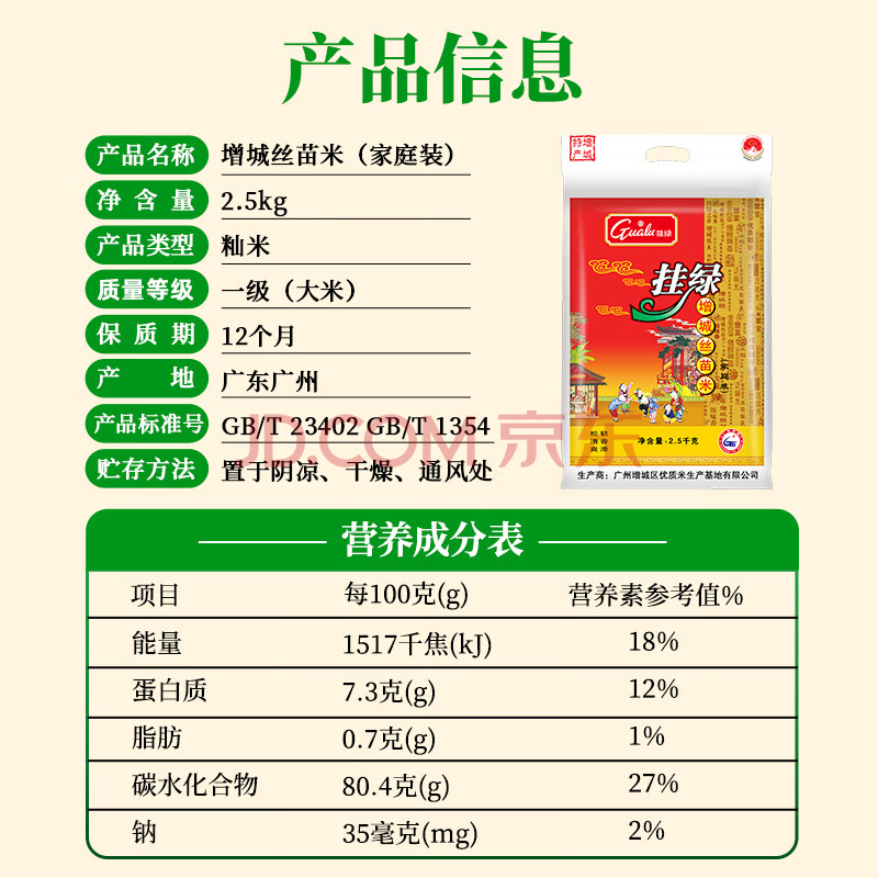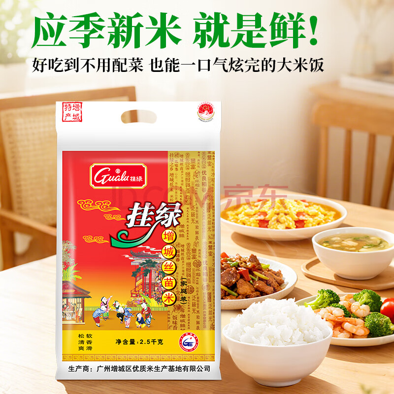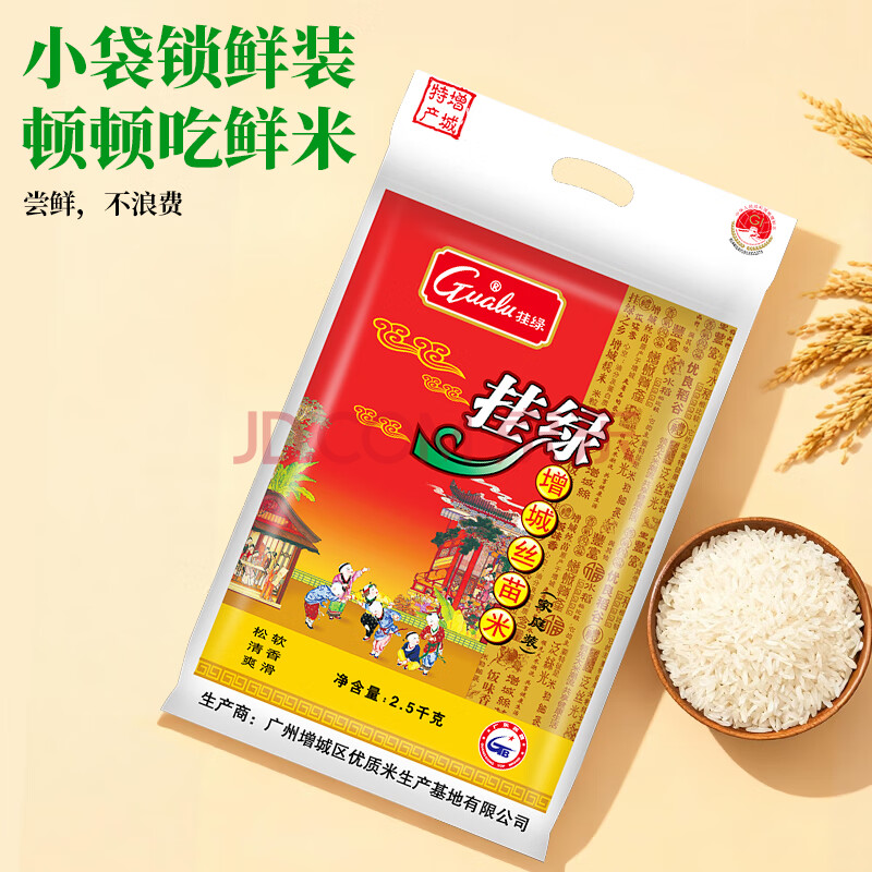 商品相册:挂绿增城丝苗米5斤 国家地标(增城特产) 籼米 南方大米 长粒米第