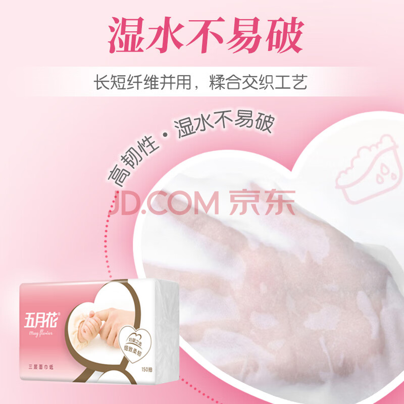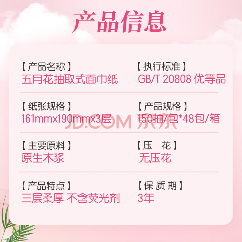 商品相册:五月花(May Flower)抽纸 3层150抽*48包M码 细腻柔软亲肤面巾纸 整箱销售第