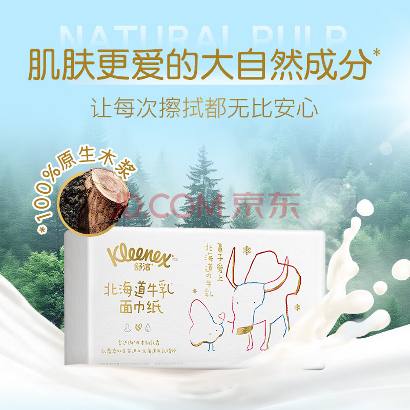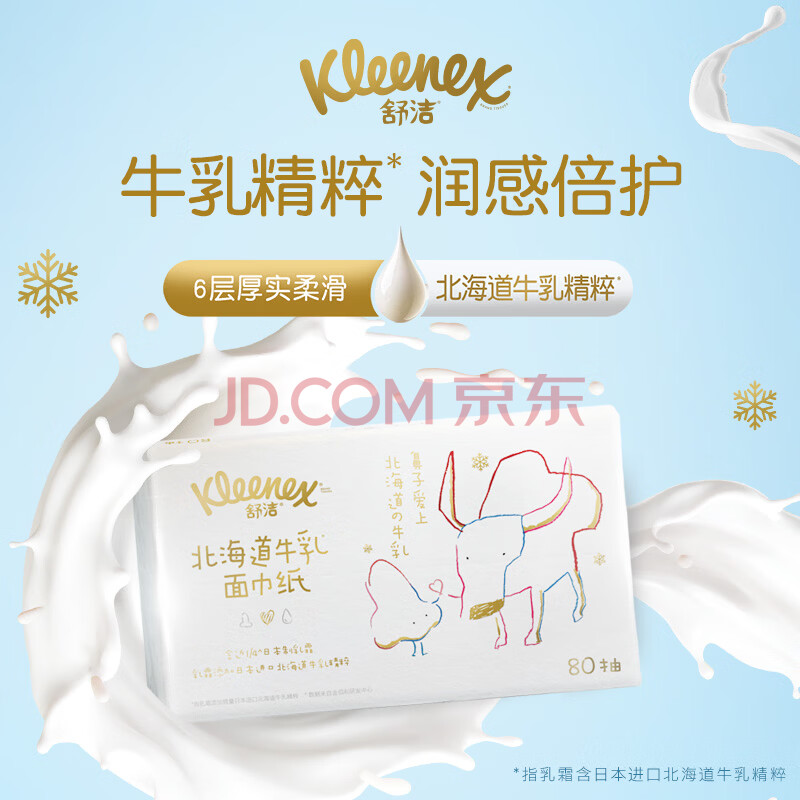 商品相册:舒洁(Kleenex)牛乳纸6层80抽*5包纸巾乳霜纸婴儿保湿卫生纸云柔巾柔润面巾抽纸第