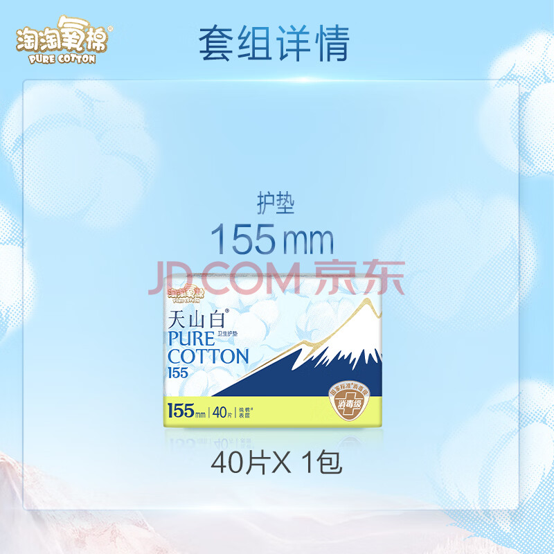 商品相册:淘淘氧棉天山白纯棉消毒级卫生巾护垫155mm40片京东自营第