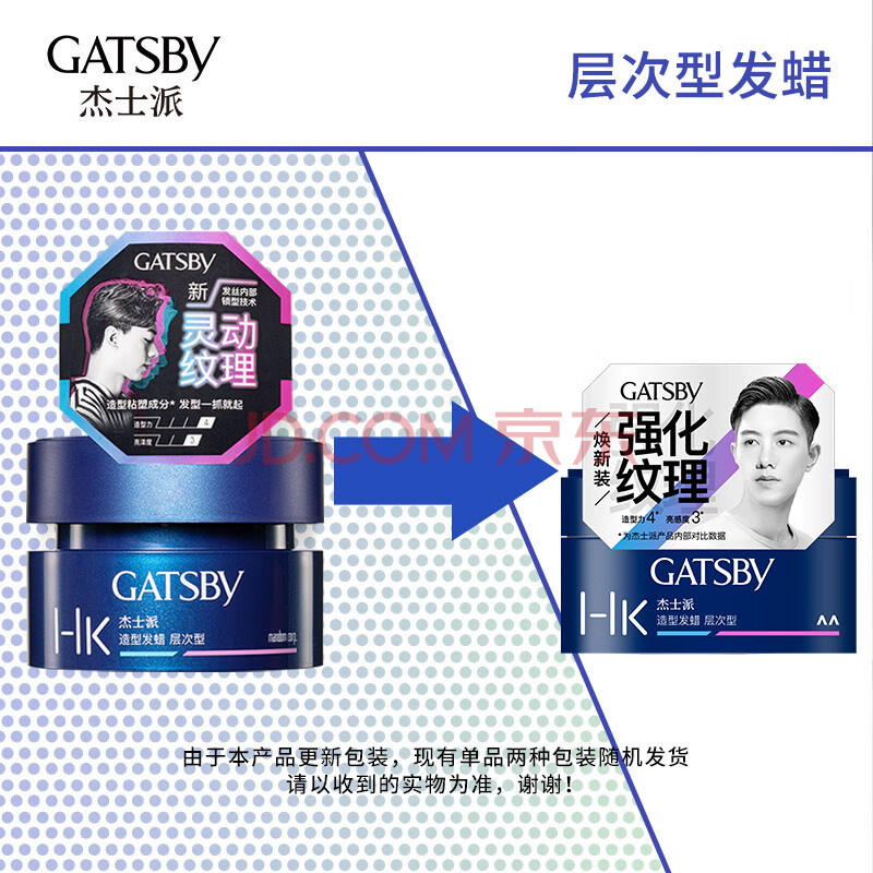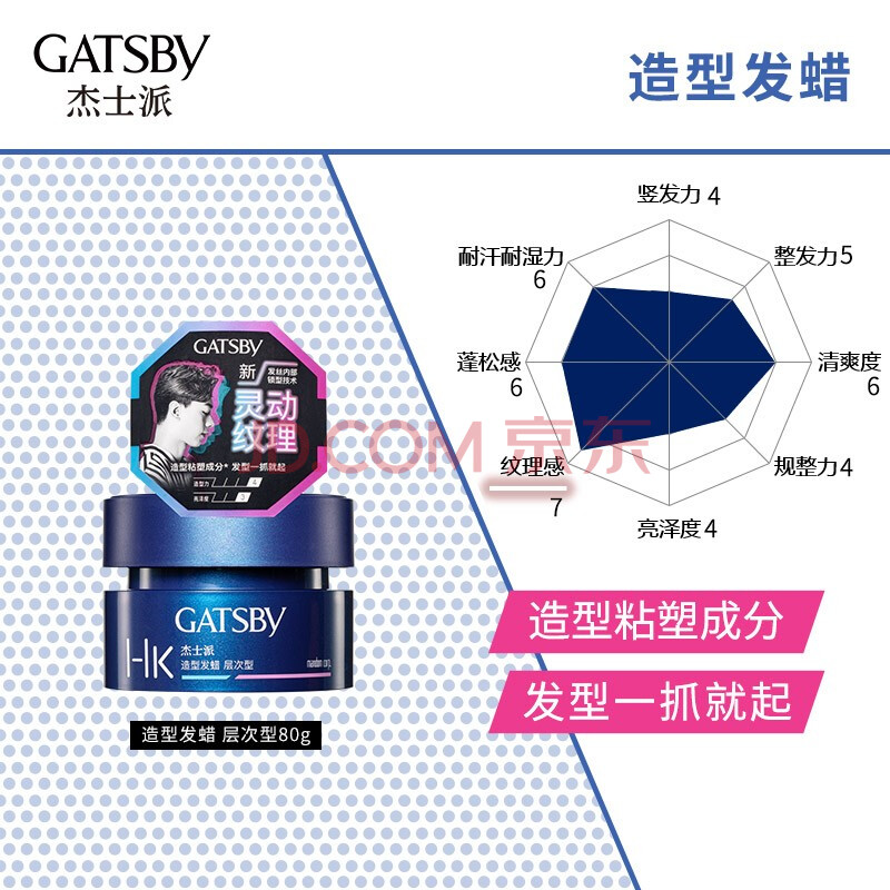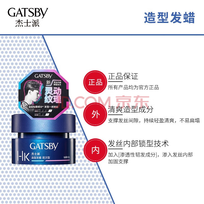 商品相册:杰士派 GATSBY 造型发蜡层次型80g 活力亮泽立体发型新老包装随机发货第