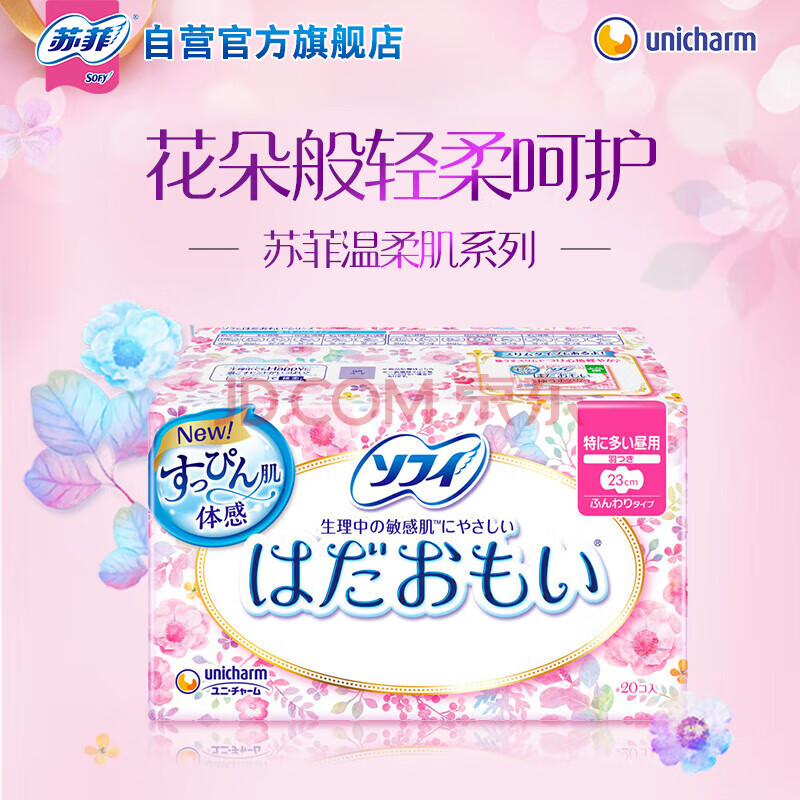 商品相册:苏菲温柔肌进口日用卫生巾230mm20片 超薄敏感肌亲肤无感姨妈巾自营第