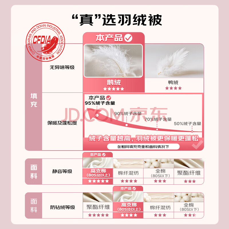 商品相册:康尔馨AFree净绒被95羽绒被120S冬被鹅绒被子绒重1.4斤150*210cm 白色第