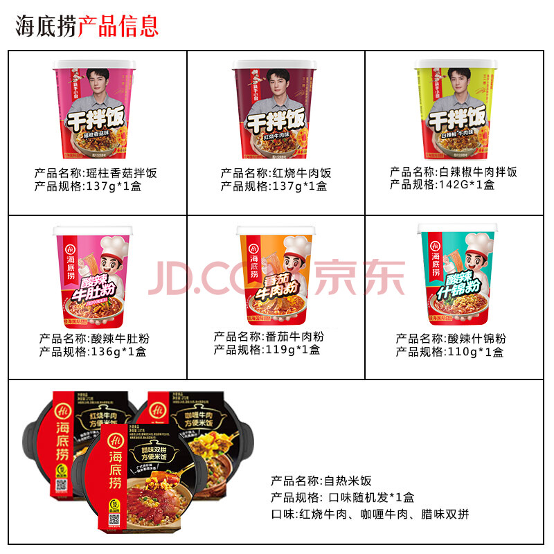 商品相册:海底捞速食干拌饭冲泡粉丝组合套装7桶装 懒人食品早餐夜宵方便速食零食1053g第