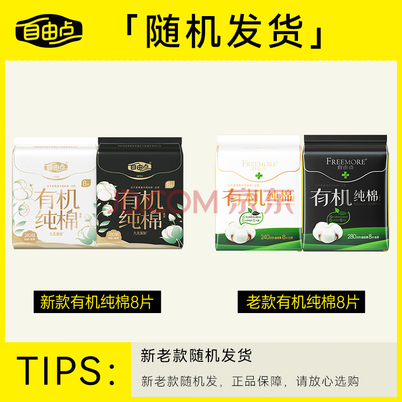 商品相册:自由点有机纯棉表层系列卫生巾透气干爽姨妈巾 日夜组合40片 京东自营第