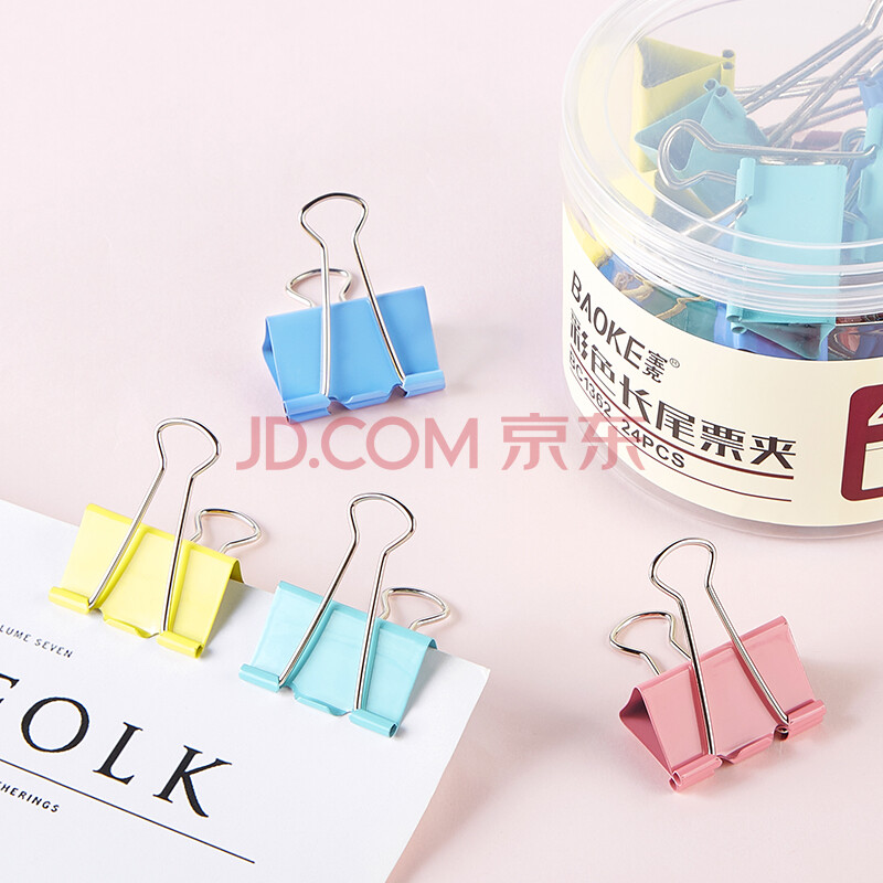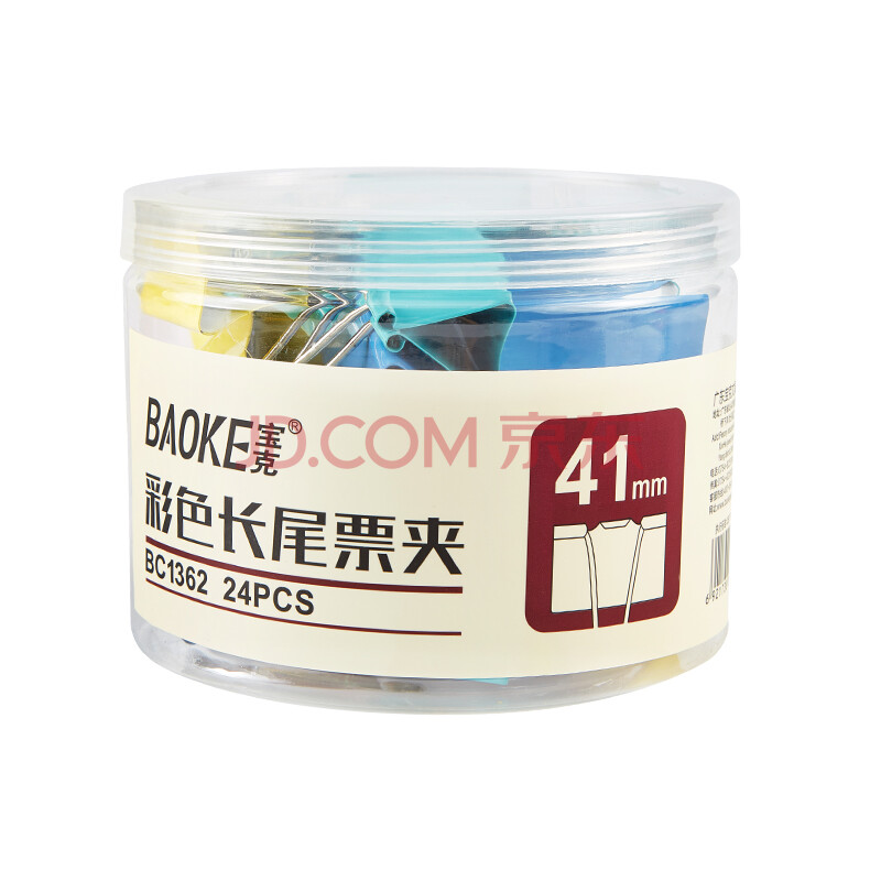 商品相册:宝克(BAOKE)BC1362 41mm彩色长尾夹长尾票夹 燕尾夹 24只/筒第