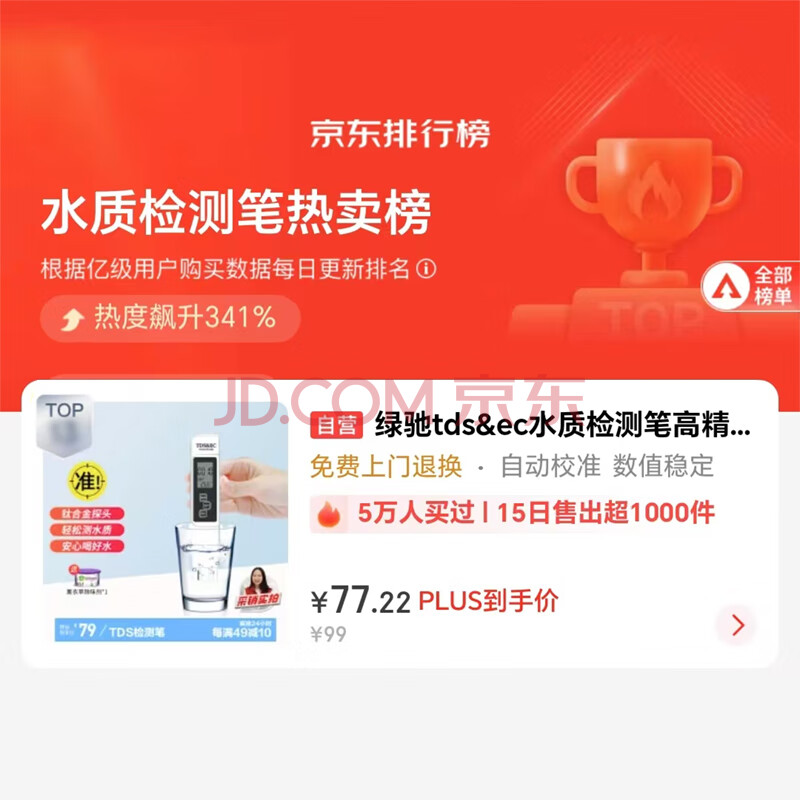 商品相册:绿驰tds&ec水质检测笔高精准测水笔家用自来水纯净水检测仪器测水质值第