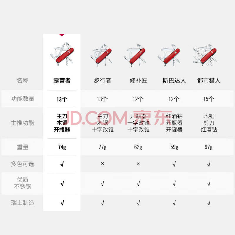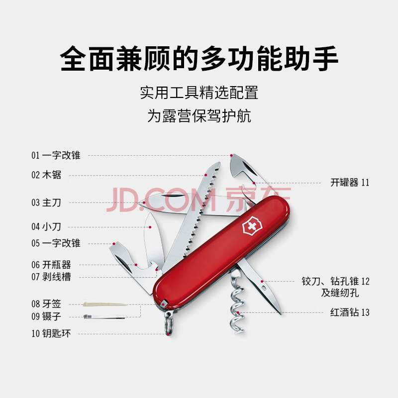 商品相册:维氏瑞士军刀露营者91mm户外刀具折叠刀防身小刀1.3613红第