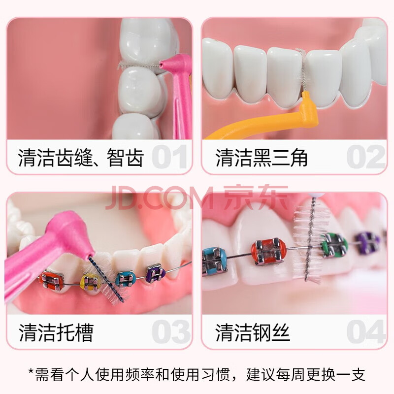 商品相册:Tepe瑞典进口牙缝刷正畸矫正牙间刷长柄L型(0.4mm)粉色齿缝清洁间隙刷第