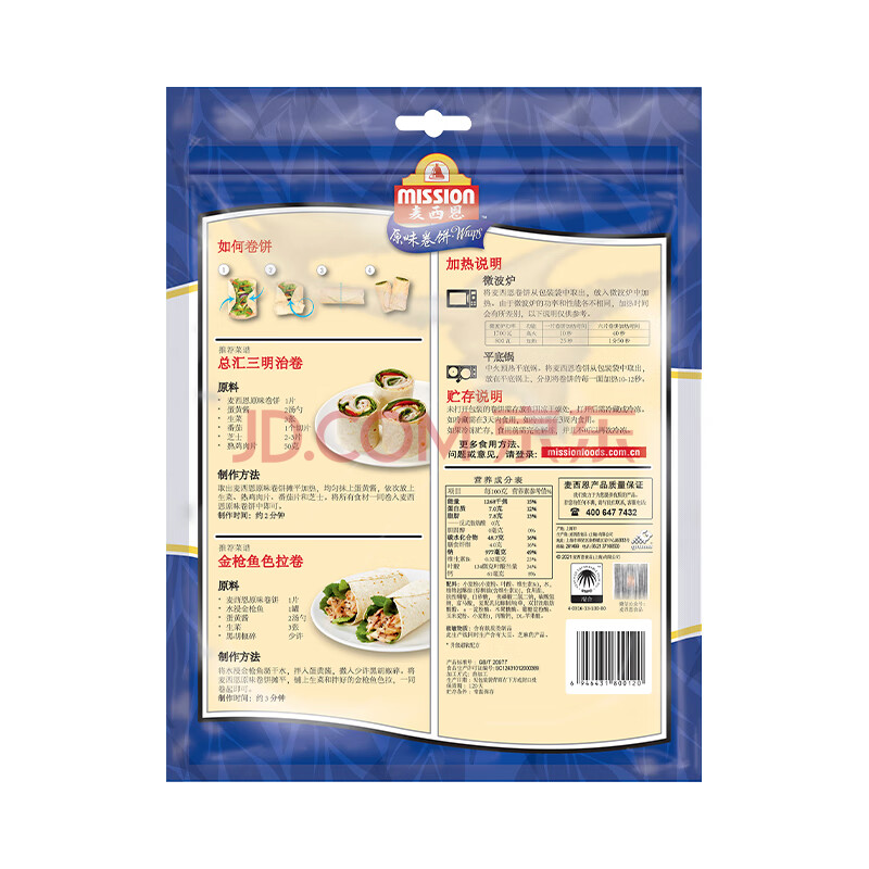 商品相册:麦西恩 原味卷饼270g 8英寸 6片装 早餐手抓饼墨西哥卷饼塔可饼皮第