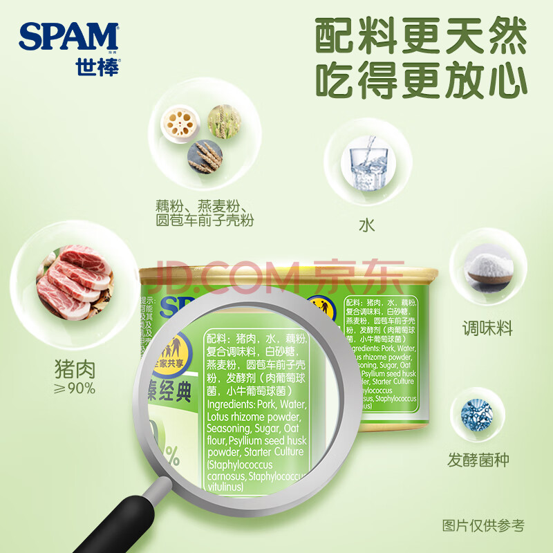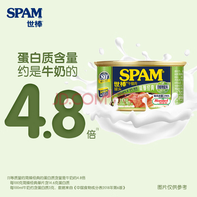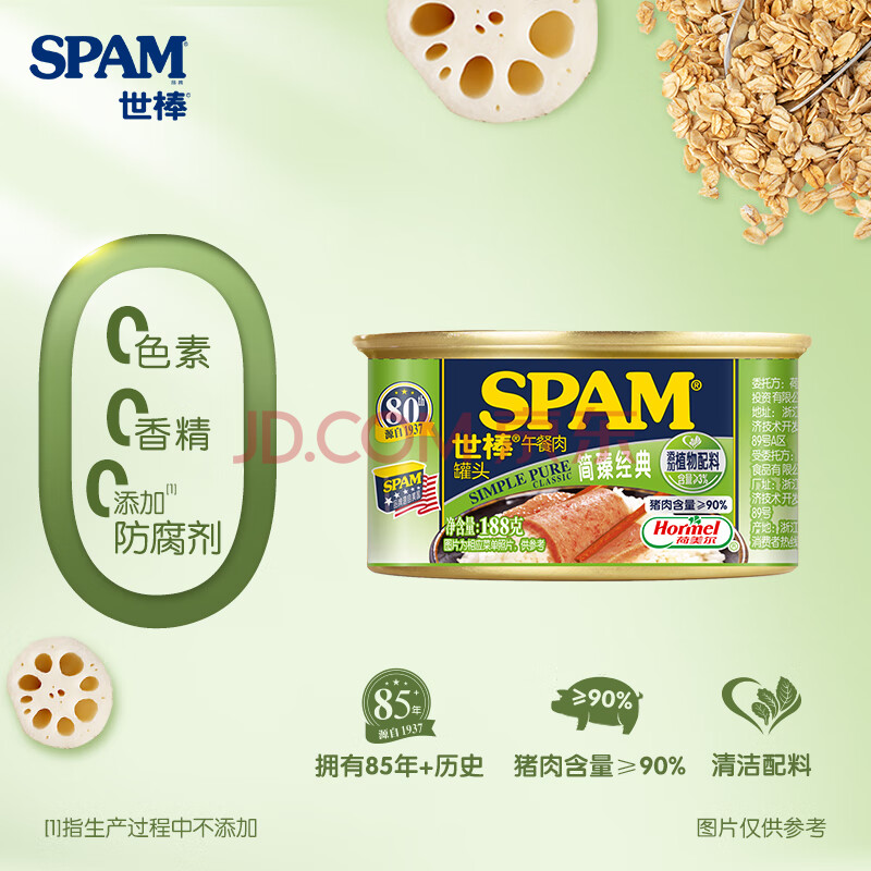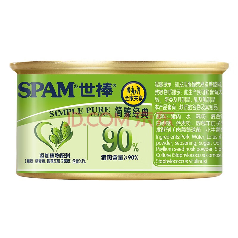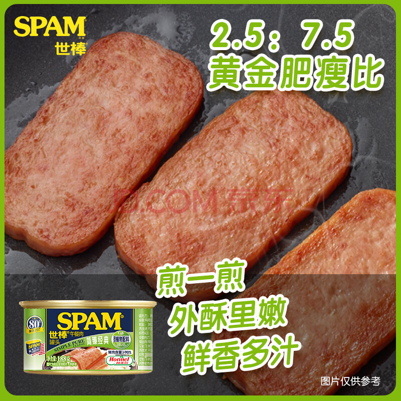 商品相册:世棒(SPAM)午餐肉罐头简臻经典口味188g 早餐泡面火锅烧烤香锅 即食户外露营第