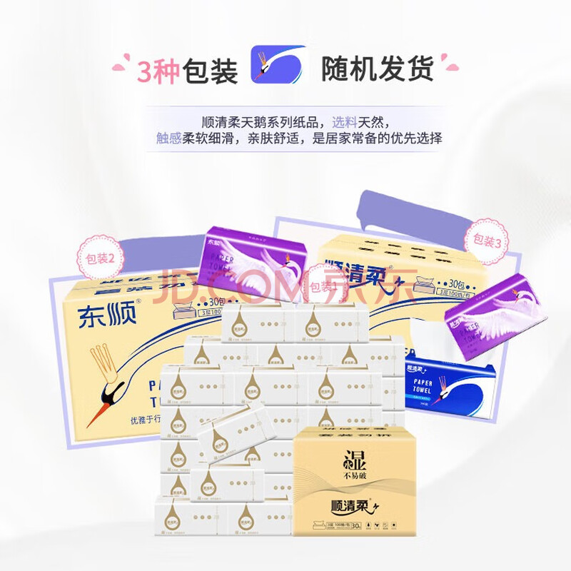 商品相册:顺清柔抽纸3层100抽*30包S码 抽取式面巾纸软抽纸巾整箱销售第