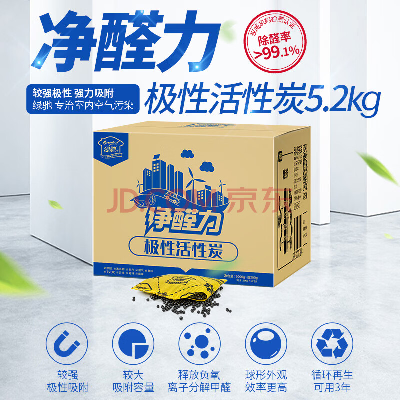 商品相册:绿驰 5.2kg光触媒活性炭新房车装修去除甲醛清除剂吸异味苯tvoc竹碳包第