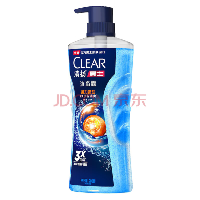 商品相册:清扬(CLEAR)男士平衡控油沐浴露 活力运动型700g 磨砂颗粒含牛磺酸第