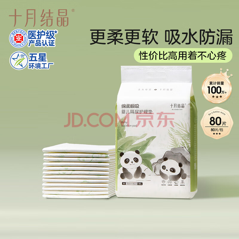 商品相册:十月结晶婴儿一次性隔尿垫80片33*45cm防水尿垫护理垫隔尿垫婴儿 熊猫宝宝第