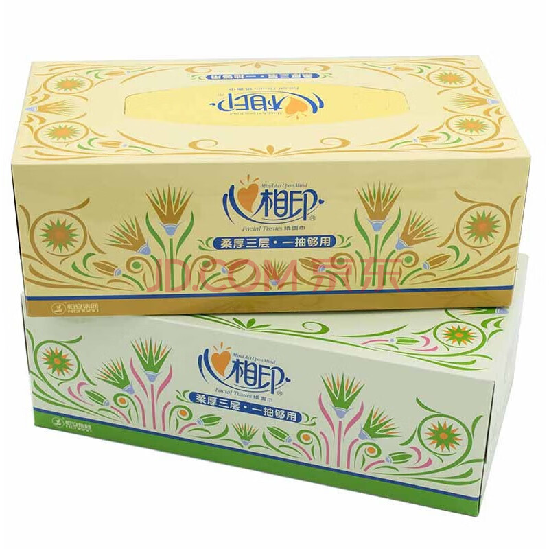 商品相册:心相印 硬盒抽纸90抽三层面巾纸典雅图硬纸盒装 18090 6盒/提 LY第
