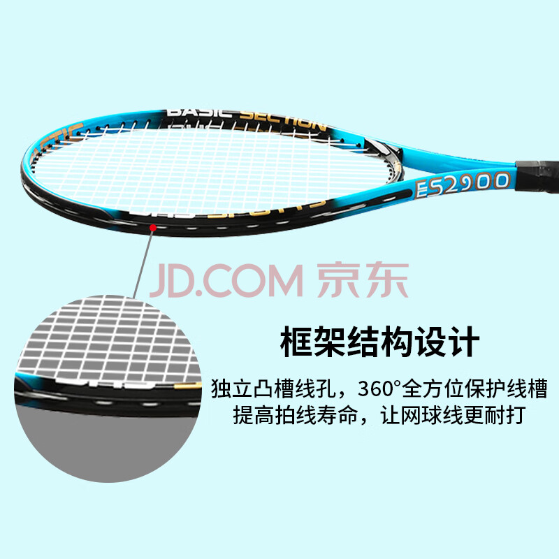 商品相册:红双喜(DHS)网球拍健身训练男女初学者铝合金网拍ES2900 已穿线 附球第