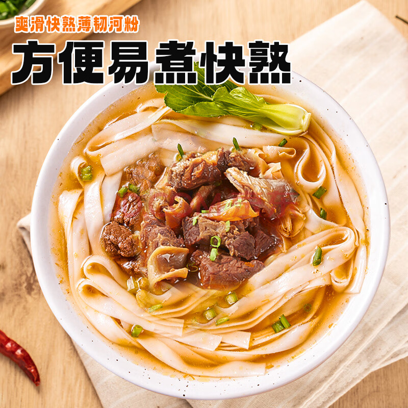 商品相册:寿桃牌汤河粉(5包装牛腩味)方便速食面条独立包装375g/包第