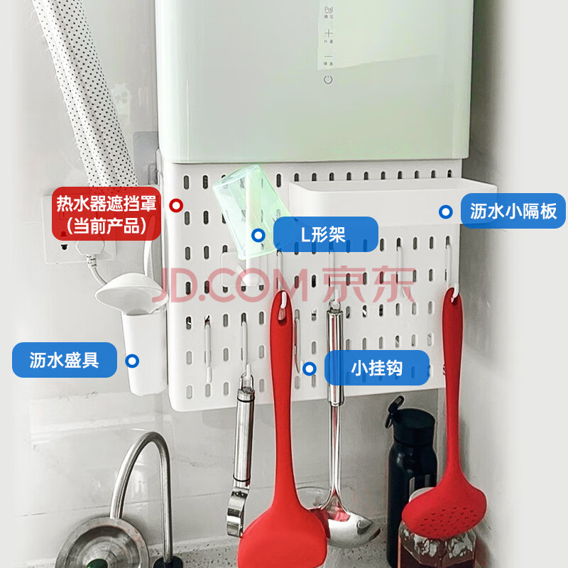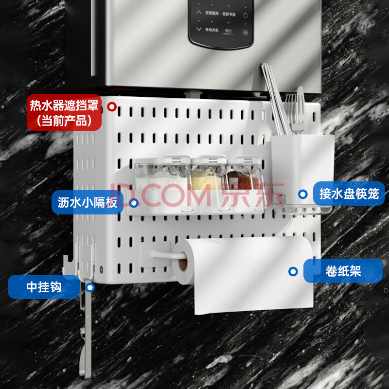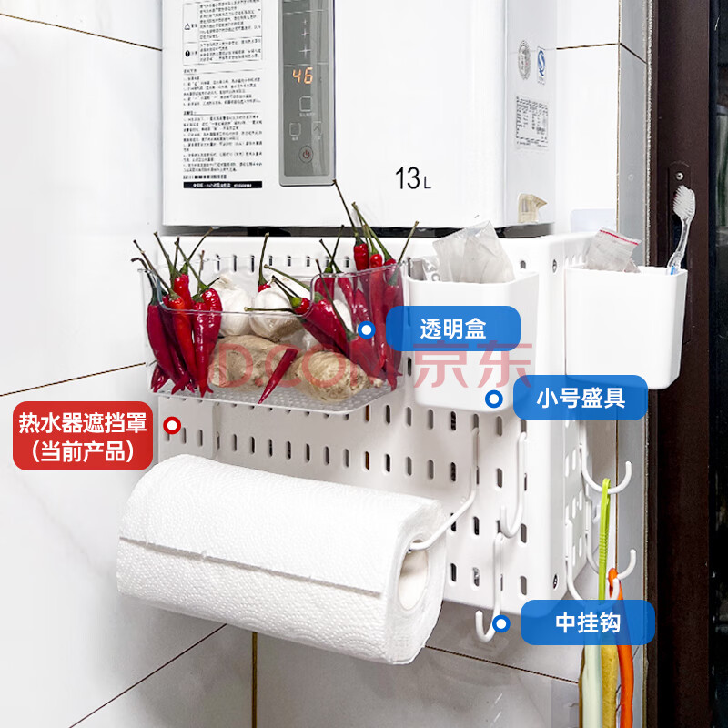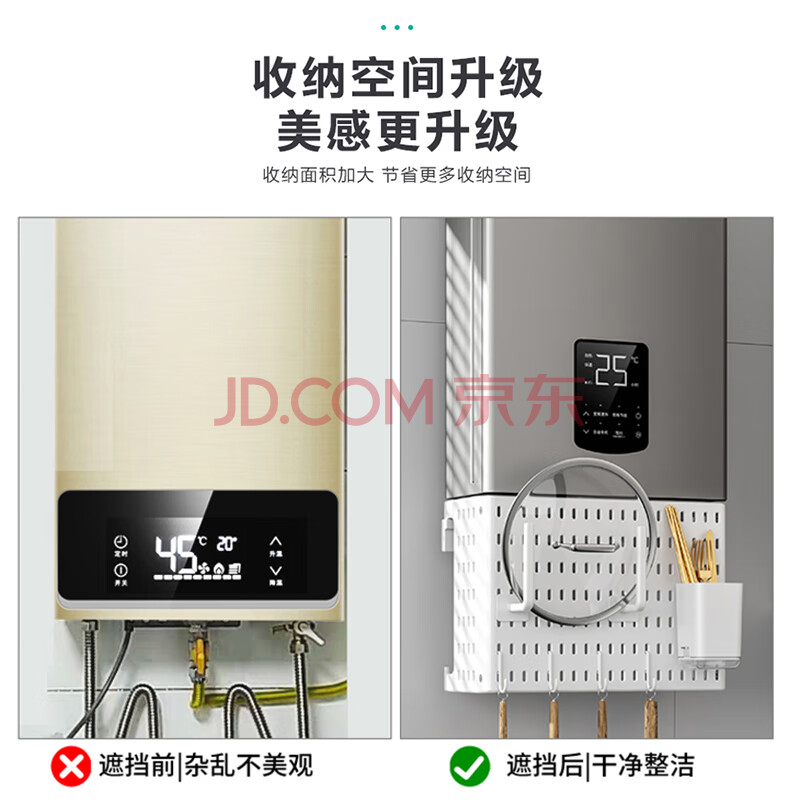 商品相册:班哲尼热水器遮挡罩燃气管道遮丑免打孔洞洞板收纳架多功能厨房置物架第1张/共8