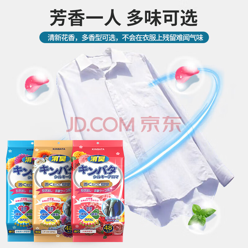 商品相册:KINBATA日本樟脑丸衣柜驱虫防霉球衣柜香薰包宿舍防潮干燥剂48包清新花香第