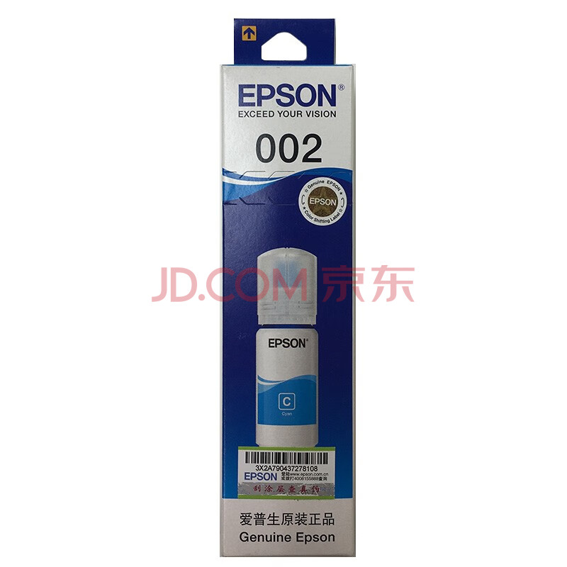 商品相册:爱普生(EPSON)002原装墨水 L4158 L4168 6168 L6178 L6198打印机 002 T03X1青色墨水 RH.第